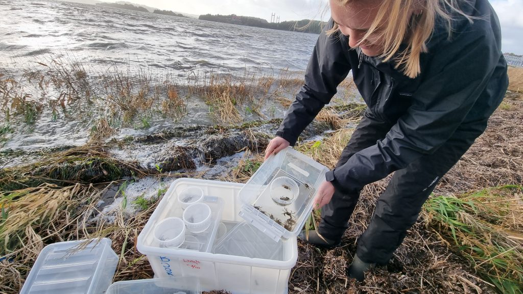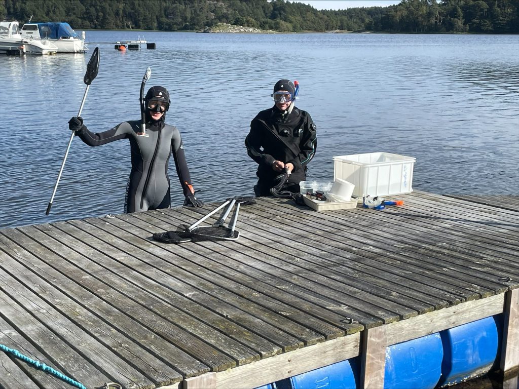 The day was spent on Orust and Tjörn on the Swedish west coast to collect data for the project Climate Invasives. Water samples were collected on different locations and filtered on site for later eDNA analysis in order to detect and map invasive species in the area. Bachelor student Lydia filtering water samples from different