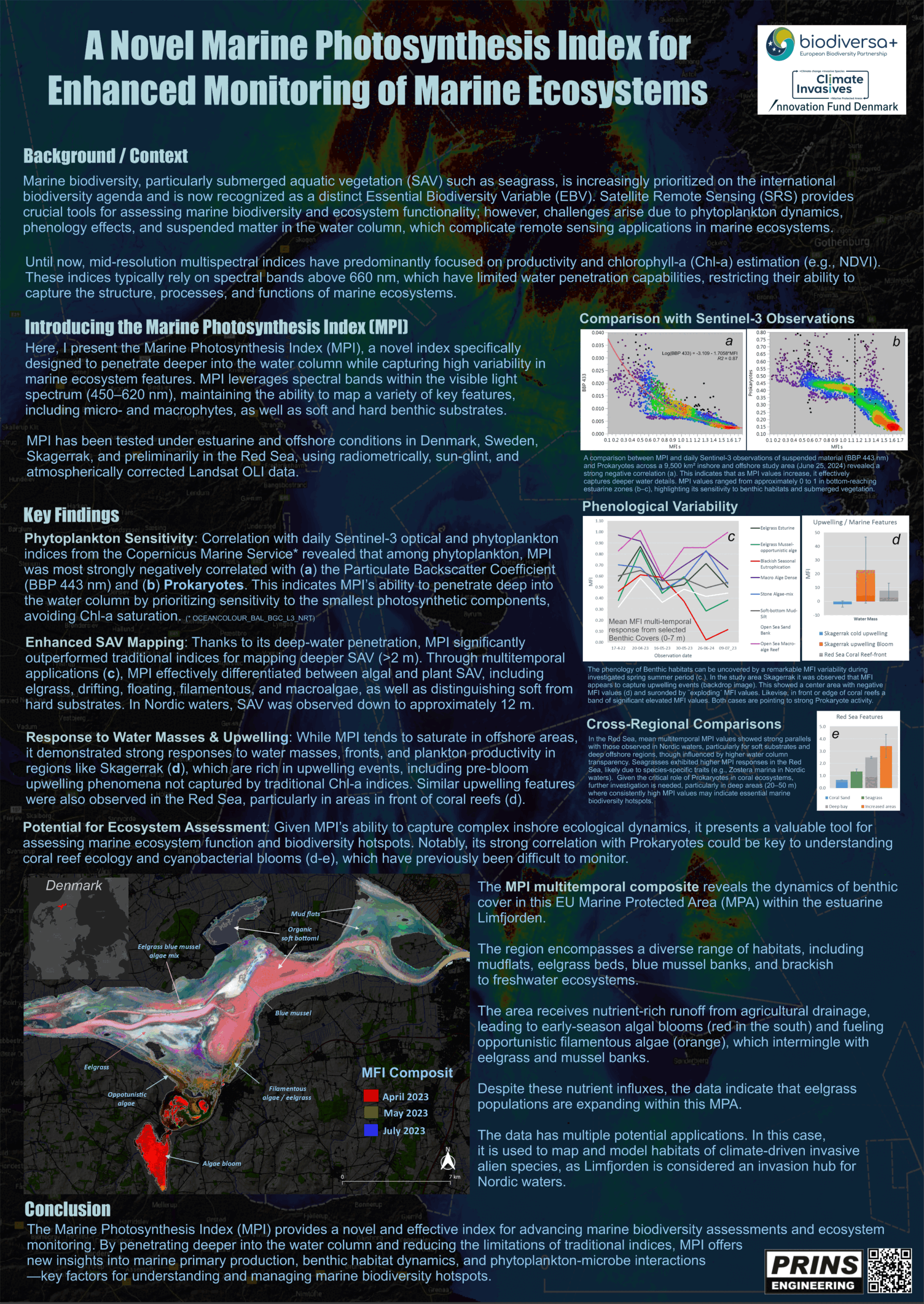 A novel remote sensing application for the marine environment was presented at the ESA BioSpace25 conference. The conference also provided a valuable opportunity to connect with other Biodiversa+ consortium members. https://biospace25.esa.int/